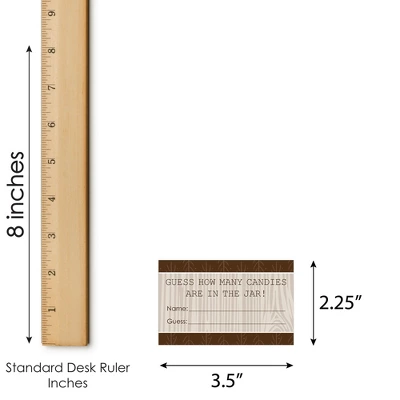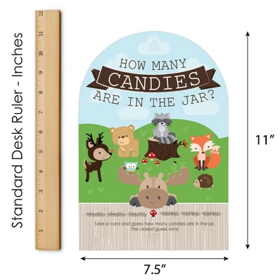 Woodland Creatures Candy Guessing Game INCLUDES 1 sign with a built-in stand and 40 guessing cards that will look great at your Baby Shower or Birthday Party. Sign measures 7.5” wide by 11” tall and cards measure 3.5” by 2.25” tall. Candy and jar are not included. HOW TO PLAY: Draw attention to your candy jar with the Woodland Creatures Candy Guessing Game! Place the sign and cards next to your candy jar. Guests can then take a card and guess how many candies are in the jar. The closest guess wins! Easy to write on. EASY ASSEMBLY: To use, fold the sides of the stand towards the center. Then, fold down the support piece of the stand until it rests in the notches. Finally, display your Forest Animals sign next to your container of candy. HIGH-QUALITY SUPPLY: Woodland Creatures Candy Guessing Game is professionally printed double-sided on sturdy cardstock paper with a photo-like shine. They are individually inspected and then carefully packaged by hand. Sign arrives flat with some easy assembly required. MADE IN THE USA: Woodland Creatures Candy Guessing Game is designed and manufactured at our Wisconsin facility using materials that are Made in the USA.