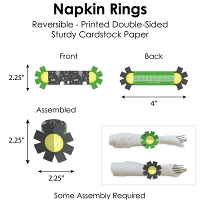 - Napkin Rings: Includes 8 reversible DIY paper rings that measure 2.25” wide by 2.25” tall when assembled.