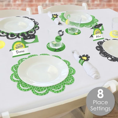 Paper Chargers: Includes 8 scalloped-edge table decorations that are the perfect base for your meal plates. Each place setting charger measures 11.25” in diameter and is a great substitute for a paper doily. They come with a scallop border that can be flared up for an elevated look. Professionally printed double-sided on sturdy cardstock paper, paper chargers are reversible for an alternate look. Napkin Rings: Includes 8 DIY You Got Served Tennis paper napkin rings with tassel-shaped ends. Professionally printed double-sided on sturdy cardstock paper, each napkin ring holder is reversible and measures 2.25” wide by 2.25” tall when assembled. To use, carefully curve each ring without creasing and connect by interlocking the tassel-shaped ends together. Sports Drink Tags: Includes 8 paper drink charms that are perfect for accessorizing your drinkware. Each beverage tag is professionally printed double-sided on sturdy cardstock paper with space on the backside for handwritten personalization. Drink tags measure 1.5” wide by 2.75” and will look great on the stem of a glass or on the rim of your cup. Place Cards: Includes 8 You Got Served Tennis name cards that are professionally printed double-sided on sturdy cardstock paper and measure 3.5” wide by 2.5” tall when assembled. To use, push back the top outer edge, revealing the half-circle top. Fold along the pre-scored line in the center to create the tent shape, and then display! Paper Coasters: Includes 8 Sports reversible circles that perfectly highlight your drinkware. Each beverage coaster is professionally printed double-sided on sturdy cardstock paper and measures 4” in diameter.