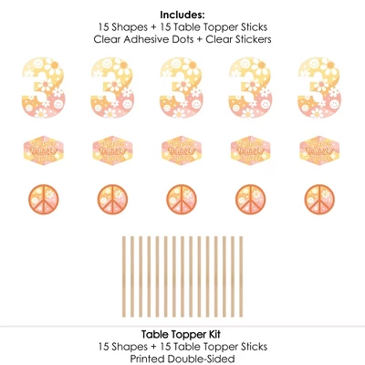 Young, Wild and Three Centerpiece Sticks INCLUDES 15 Boho Hippie table toppers in three different shapes, 15 table topper sticks, and stickers for easy assembly. Pastel Multicolor party table decorations are perfect for a Third Birthday Party. Young, Wild and Three Party Centerpiece Sticks SIZE 5 – Shape 1 (7.75″ x 10.75″), 5 – Shape 2 (5.5″ x 5.5″), and 5 – Shape 3 (7″ x 5.25″). The unique design and variety of pieces makes this table decoration kit an impressive addition to any Groovy theme party. EASY PARTY DECOR: Young, Wild and Three table decorations can be used as centerpieces when attached to the included dowels and inserted into vases or floral arrangements. They easily accent your Third Birthday Party candy buffet when you add them to apothecary jars. Table toppers are also a great addition to any photo booth. The large, shaped cut outs will make your party pics instantly shareable. Boho Hippie party centerpiece sticks are sure to make a statement however you choose to use them! PREMIUM PARTY SUPPLIES: Young, Wild and Three party table toppers are professionally printed on heavy-duty cardstock paper with a photo-like shine. They are individually inspected and carefully packaged by hand with table topper sticks and stickers for easy assembly. Get creative with your DIY party ideas! MADE IN THE USA: Young, Wild and Three Party Centerpiece Sticks are designed and manufactured at our Wisconsin facility using materials that are Made in America.