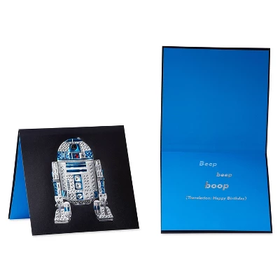 See your favorite Star Wars characters blinged out for birthdays and more! Perfect for sharing with Star Wars fans or framing as collectible art, these Papyrus greeting cards are elegant and dramatic with sophisticated styling. The R2-D2 birthday card will delight anyone with shiny gems and shimmering foil and a funny droid message. Explore the dark side with a delightful Darth Vader birthday card encrusted with glistening gems. Perfect for any occasion, the stormtrooper blank card features small round gems and foil accents on the cover and blank space inside for a personal message. Combining the universal popularity of Star Wars with the dazzling artistry and embellishments of Papyrus-styled cards, this collection will deliver epic greetings!