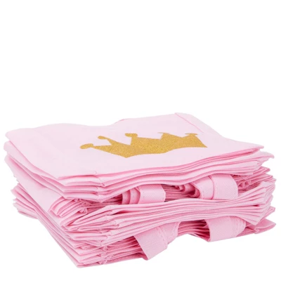 - Package Contents: In this pack, you will receive 24 light pink tote bags with a gold crown printed on the front; perfect for princess-themed party favors, candies, treats, small toys, and goodies