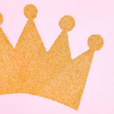 - Princess-Themed Goodie Bags: Our set of 24 party favor bags feature an elegant gold crown in the center of a light pink background; perfect for a princess-themed birthday party