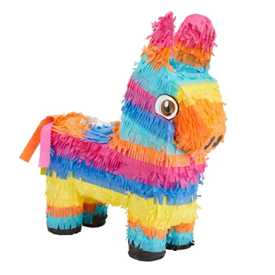 Get ready to yell “Olé” at your upcoming Mexican fiesta theme party or Cinco de Mayo celebration, thanks to this donkey pinata set! Children and adults of all ages will enjoy their shot at breaking the small and mini pinata to reveal the fun toys, delicious chocolates, or colorful confetti hidden inside! The colorful fiesta pinata will perfectly complement your birthday party decor while creating a fun party game for your guests. The small Mexican pinata measures 13 x 4.25 x 15 inches, and the mini measures 6 x 2 x 9.2 inches; use a rope to conveniently hang it off a ladder, roof, railing, or tree to get the party started!