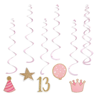 Make your official teenager happy on their 13th birthday with this 13th birthday decorations kit. It comes with everything you need to make decorating your party fast and easy! Included in this pink, white, and gold official teenager birthday decorations kit is 1 paper banner, 15 whirls, 24 latex balloons, and 2 balloons numbered 1 and 3; all of which will liven up the house on your teen’s special day! This kit helps make your day easier, just inflate the balloons and set up the rest of the decorations in any way you please