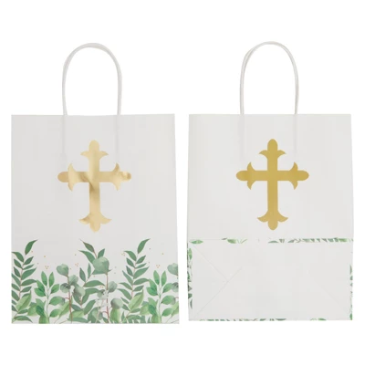 - Gold Cross Design: The cross gift bags feature an intricate gold cross made of fine gold finish foil; the bottom of the bags feature leaf vines that reach just before the cross
