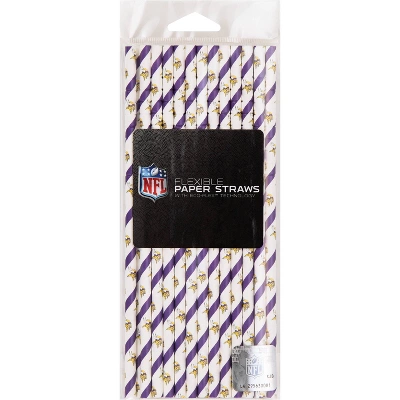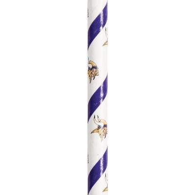 When you are serving cold drinks to football fans remember to include the Minnesota Vikings Paper Straws to score some extra points with guests. The sturdy white paper straws feature a purple spiral stripe and the intimidating Viking logo, which will help to keep fans thirst at bay on game day. Sold 72 per package, the disposable straws are an essential addition to the drink station, and they’ll look great when used with the matching 20 ounce theme cups for barbeques or tailgate events.