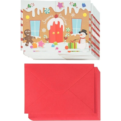 - Gingerbread Design: Find the perfect christmas greeting cards for your upcoming holiday event; these festive card are designed like a cute gingerbread house that look good enough to eat