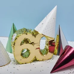 Mini Number Pinata 60 For 60th Birthday & Anniversary, Gold Foil