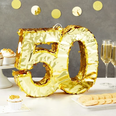 - 50TH PARTY SUPPLIES: Impress your guests with a fun theme and party game, this gold foil 50th number pinata is ideal for an upcoming birthday or anniversary