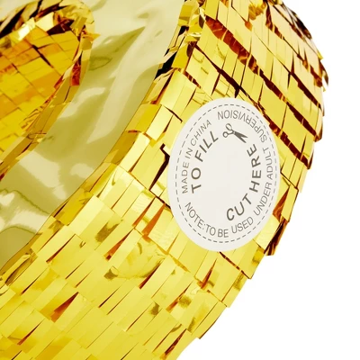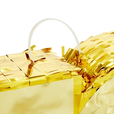 Add excitement and fun to your 50th birthday party with our small birthday pinata. This pinata measures 16 x 13.2 inches and is the perfect addition to elevate the party atmosphere. Hang the small pinata easily from the ceiling or a sturdy tree branch using some string or rope. This classic party game is loved by children and adults alike, providing entertainment and a chance for everyone to participate. Create a memorable experience as guests take turns trying to break open the pinata to reveal the hidden treasures inside. Fill it with delicious candies, small treats, or other fun pinata fillers that will delight partygoers of all ages. The shimmering gold foil design adds a touch of elegance and excitement to the celebration, making the pinata great as 50th birthday decorations.