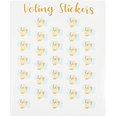 - Gender Reveal Game: Predict the baby’s gender thanks to this “Cast a Vote” baby shower prediction card game with stickers