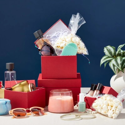- Nesting Gift Boxes: Add this set of red gift boxes with lids to your party supplies to conveniently wrap a wide variety of sweet treats, toys, jewelry, accessories, and clothing