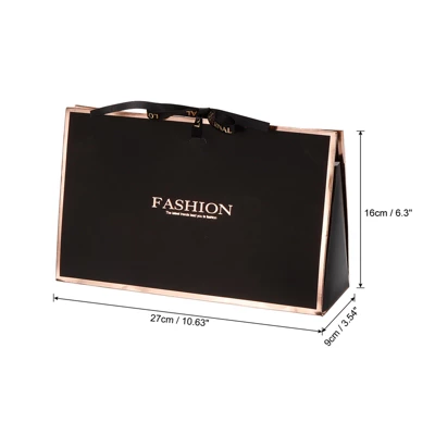These gift bags are suited for every occasion and can be used as gift wrapping, party favor bags, retail bags, wedding bags, bouquet wrapping bag, etc.SpecificationColor: BlackMaterial: PaperSize: 27x9x16cm / 10.63×3.54×6.3 inch(LxWxH)Package List: 5 x Paper Gift BagAdvantage1. Transparent window designed, both special and artistic2. The bag is made of paper and can be reused or recycled.3. This bag can be used not only as a gift bag but also for storing small itemsInstructionOpen the bag and put your items inside. After use, fold the bag for easy storage.NOTE:Please confirm the size before ordering.